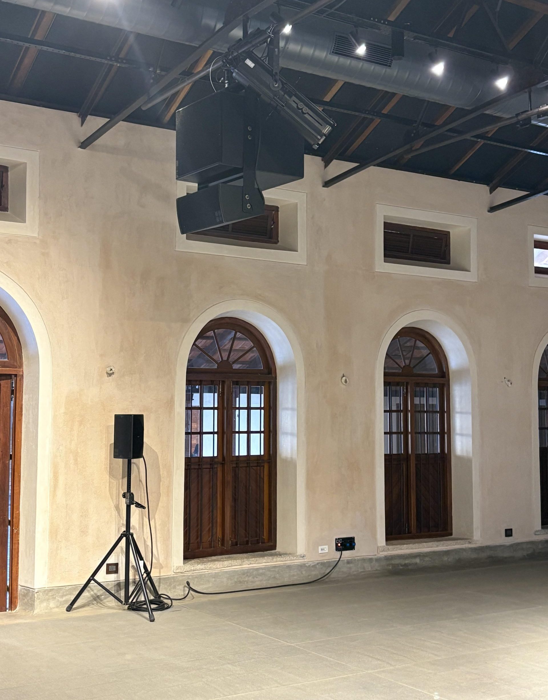 The architectural restoration of Sabha presented a delicate balance: integrating modern technology without compromising the historic aesthetic. The spaces, including a performance block, gallery, and outdoor courtyard required audio solutions that could handle both spoken word and live performance while remaining discreet, flexible, and acoustically balanced.