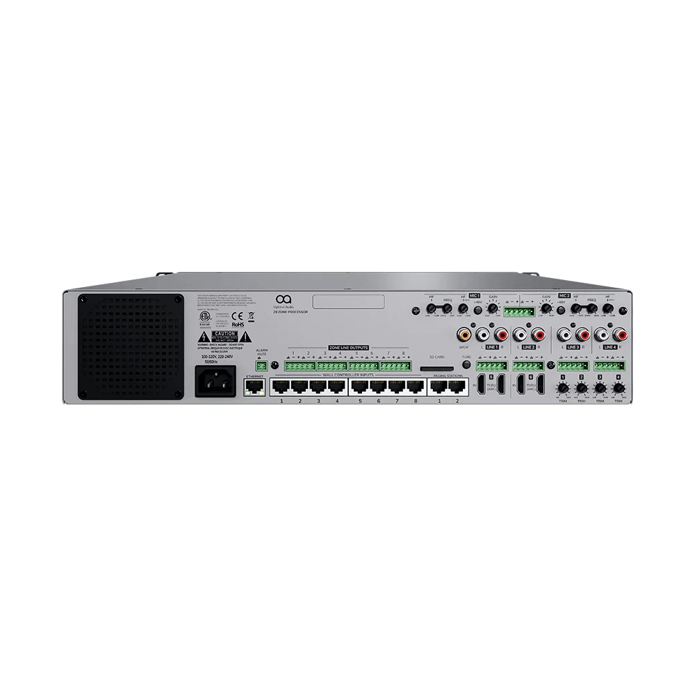Zone 8 is the heart of any sound system, handling audio signal management for eight zones. Each Zone can be configured to do precisely what is required using the intuitive WebApp. It features 4 line and 2 mic inputs plus 2 HDMI inputs for TV and video sound.