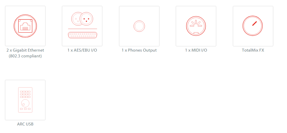 The vast number of channels can be managed by the user in two steps. Using a driver dialog or web interface, the user first adjusts the network vs. optional MADI channel count, and then pre-selects which inputs reach the 256 channel TotalMix engine. The remaining 256 channels are passed straight through. All 512 channels are visible to the DAW for recording. TotalMix offers its basic functionality without effects, but with all the great benefits such as presets, layouts, loopback, sub-mixes, and many more.