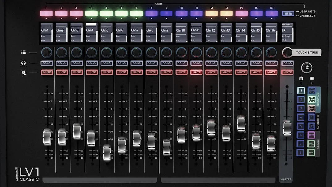 With a pristine-sounding mixer engine, quick-access UI combining a large 21.5” multi-touch screen with powerful tactile control, the industry’s most powerful integration of state-of-the-art processing, and robust physical build—LV1 Classic packs more live mixing power into a compact console than ever before.