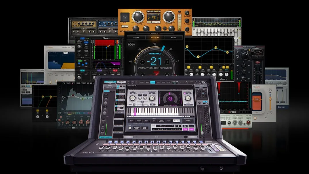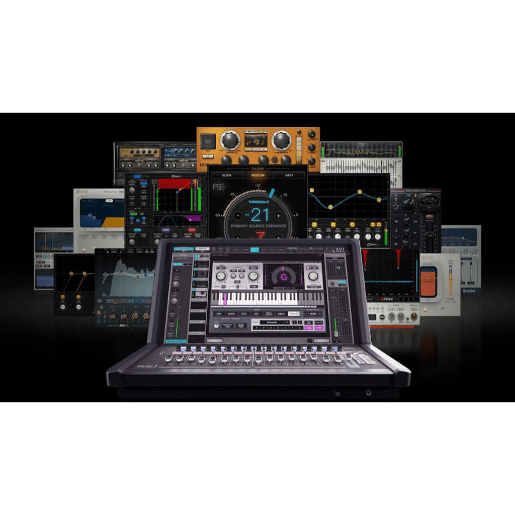 16 industry-favorite Waves processors come built into LV1 Classic, with processing handled by the console’s internal powerful DSP engine. Processors include F6 Dynamic EQ; Waves Tune Real-Time for live vocal tuning; X-FDBK and PSE for feedback and mic bleed control; the eMO D5, Q4 and F2 channel strip plugins covering dynamics, EQ and filtering; GEQ 30-band EQ; R-Comp; Magma Tube Channel Strip; H-Delay, R-Verb, TrueVerb, Doubler, and GTR3 for effects; and R-Bass for low end control.