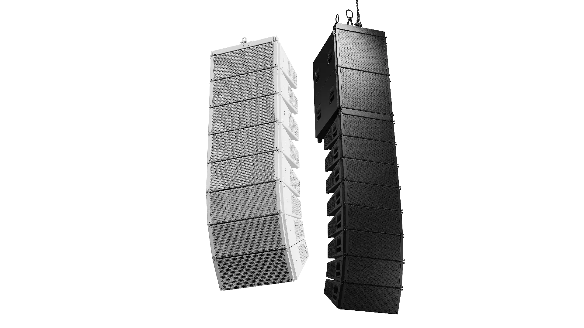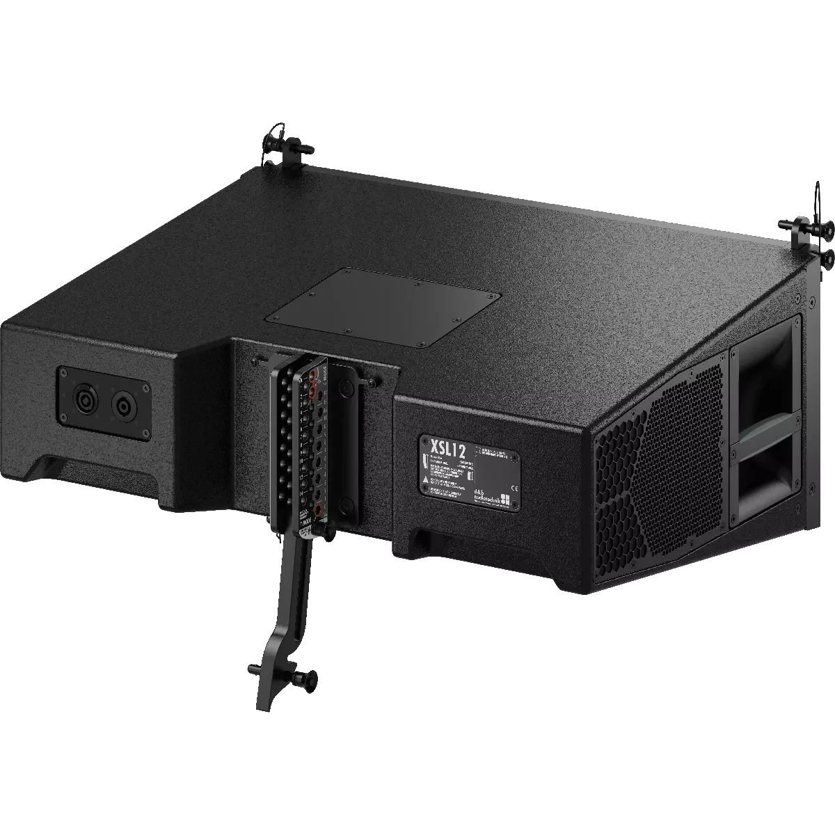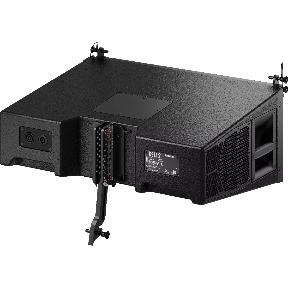 The XSL8 is a mobile specific line array module purposefully designed for small to medium scale sound reinforcement. It can also supplement GSL and KSL Systems as fill and delay. Up to twenty-four / twenty-two cabinets in compression or tension mode from XSL Flying frames and up top twelve cabinets from the smaller XSL Mounting frames can be flown in vertical columns to produce an 80° constant directivity dispersion pattern in the horizontal plane. The XSL8 houses two 8” neodymium forward facing LF drivers, two side firing 6.5” neodymium LF drivers, one horn-loaded 6.5” MF driver, and two 1” exit HF compression drivers with 2” voice coils mounted to a dedicated wave shaping device. Due to the patented arrangement of the front and side firing LF drivers, in combination with their specific processing functions, seamless directivity is maintained from 60 Hz to above 18 kHz. Further expanding flexibility and catering for applications where smaller arrays are used and ArrayProcessing is not required, the XSL8 includes the option to link two cabinets in Line or Arc mode. SL-Series’ flying hardware comes with a patented workflow with integrated tension and compression rigging modes, allowing for splay angles between cabinets to be set from 0° to 14° in 1° increments. The loudspeakers are driven actively by two channels of an appropriate d&b amplifier, which provides dedicated processing functions for the front LF and passively crossed-over side LF and MF/HF sections. This component geometry allows the cabinet to produce a perfectly symmetrical dispersion pattern.
