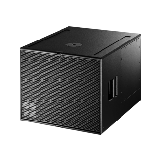 The B4-SUB is an actively driven cardioid subwoofer powered by a single amplifier channel. It houses two long excursion neodymium drivers in an integrated cardioid setup: a 15″ driver in a bass-reflex design facing to the front and a 12″ driver in a two chamber bandpass design radiating to the rear. The cardioid dispersion pattern resulting from this approach avoids unwanted energy behind the system that greatly reduces the reverberant field at low frequencies and provides the greatest accuracy of low frequency reproduction. The B4 subwoofer can only be used in a ground stacked setup. The B4-SUB cabinet is constructed from marine plywood, has an impact and weather resistant paint finish and a pair of handles. An M20 threaded flange in the top panel accepts the d&b Loudspeaker stand winder M20. The loudspeaker cabinet is also available in Special Colour (SC) options.