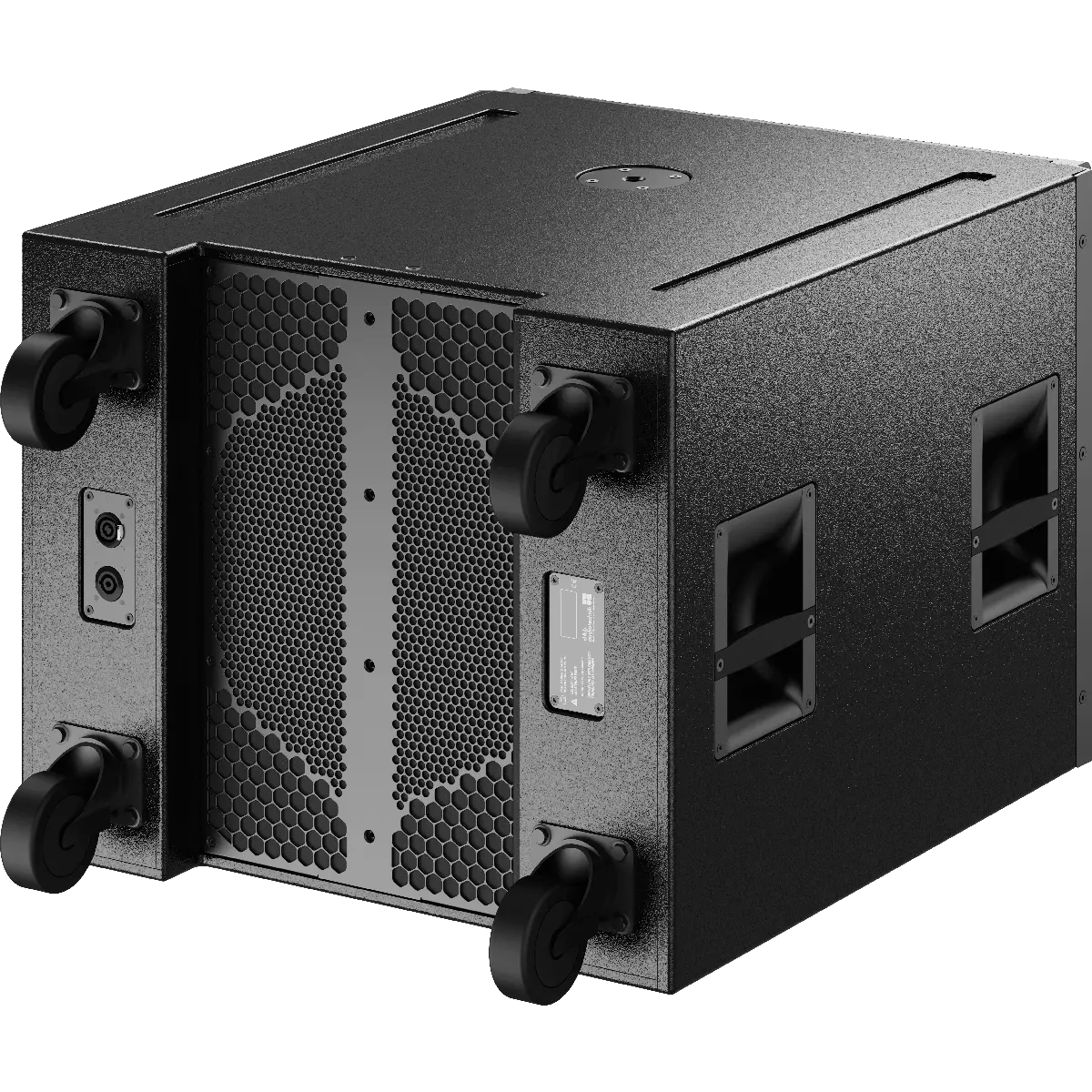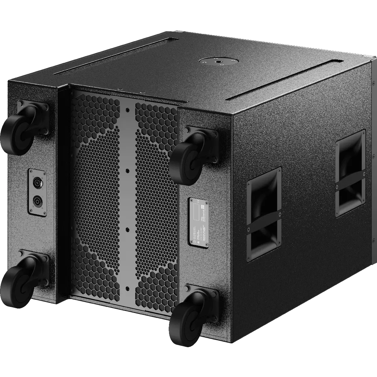 The XSL-GSUB is an actively driven, 2-way bass-reflex design housing two long excursion neodymium drivers; an 18” driver faces to the front of the cabinet, and a 12” driver radiates to the rear. The front and rear facing drivers operate in independent bass-reflex chambers and are driven from separate amplifier channels. Two XSL-GSUBs can be linked to a pair of D80 / D40 amplifier channels.