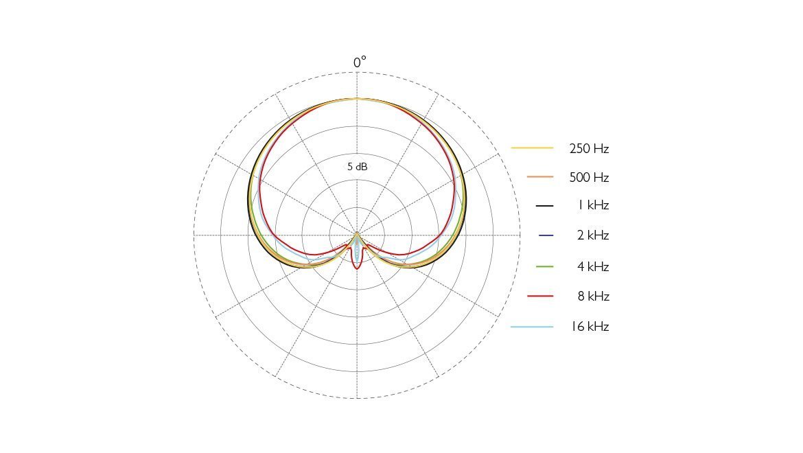 The 2012 has a cardioid capsule with DPA’s famously flat off-axis response. Besides a high gain-before-feedback, this characteristic makes it easier for sound engineers to handle bleed from other instruments at close proximity. The 2012 picks up off-axis sounds in a very natural and attenuated way.