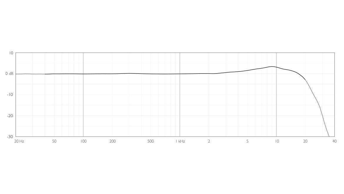 Typical on-axis response of a 2015 Wide Cardioid Microphone measured at 30 cm (11.8 in).