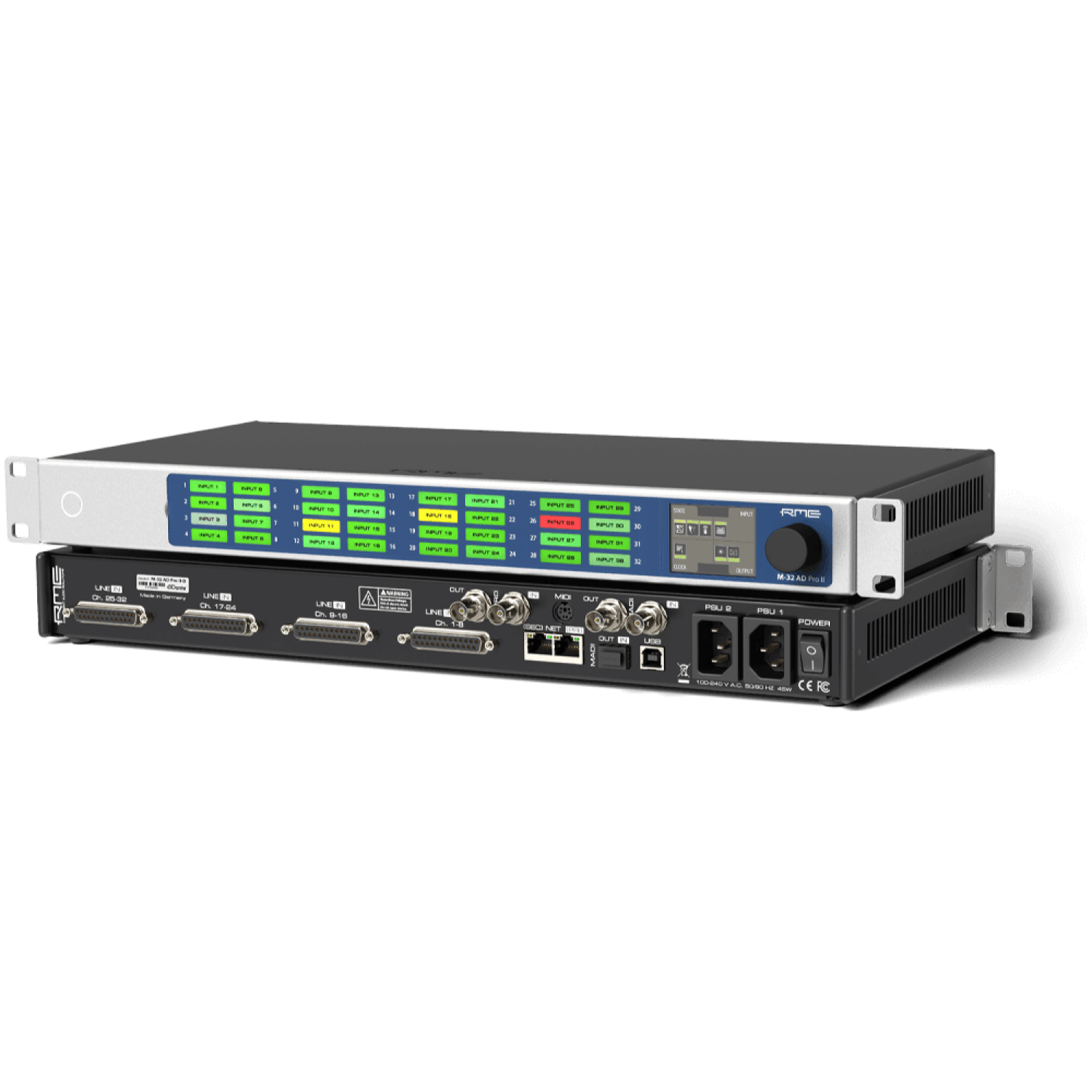 The latest 32-channel M-32 Pro II is based on state-of-the-art, high-resolution converter components and a fully balanced analog circuit design that offer signal-to-noise ratios of 120 dB(A) with very low latencies — placing the converters in the reference class. While the M-32 AD Pro II offers the same outstanding analog performance as its predecessor, the DA-Converter has even improved the THD+N to -111 dB. All models benefit from impulse response optimization at sampling rates of 88.2 kHz and higher to minimize ringing artifacts in the conversion process.