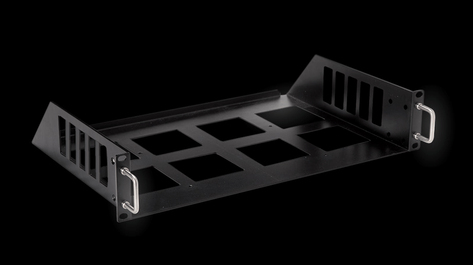 In addition to sturdy, all-metal construction, black matte screws are included for mounting a SoundGrid Impact Server-C to the tray’s underside, and metallic screws for mounting to the sides.
