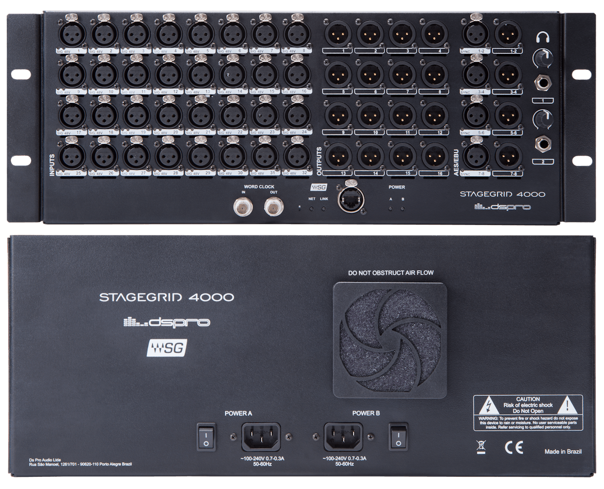 Featuring high-quality preamps that deliver a dynamic, clear sound, this SoundGrid stagebox complements live mixers like the eMotion LV1 with 32 mic/line ins, 16 analog outs, and AES/EBU ins/outs—all digitally controlled, and housed in a rugged, road-worthy, 4U chassis.