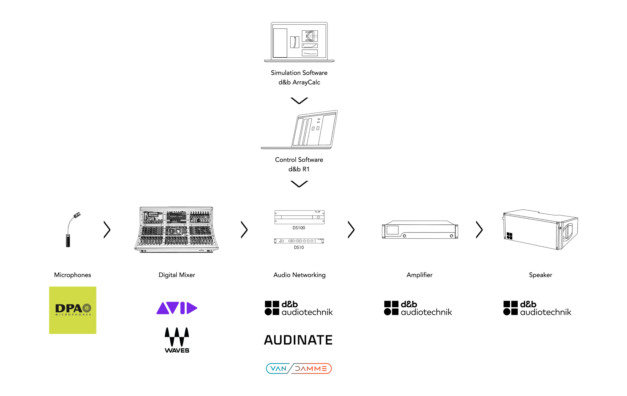 With their neutral sound character and discreet appearance, d&b systems are qualified for the task of permanently being installed in venues. The worldwide reputation and acceptance by performers, artists and musicians alike means that everyone will be content that the systems stay put and do not move at all. The d&b workflow transports a project from concept to reality with a modernized approach to installation. Their workflow begins with designing the right system for a venue with the help of the simulation software – d&b ArrayCalc, the output from this simulation is being sent to a remote control software – d&b R1, which helps the speaker and amps to communicate with each other.